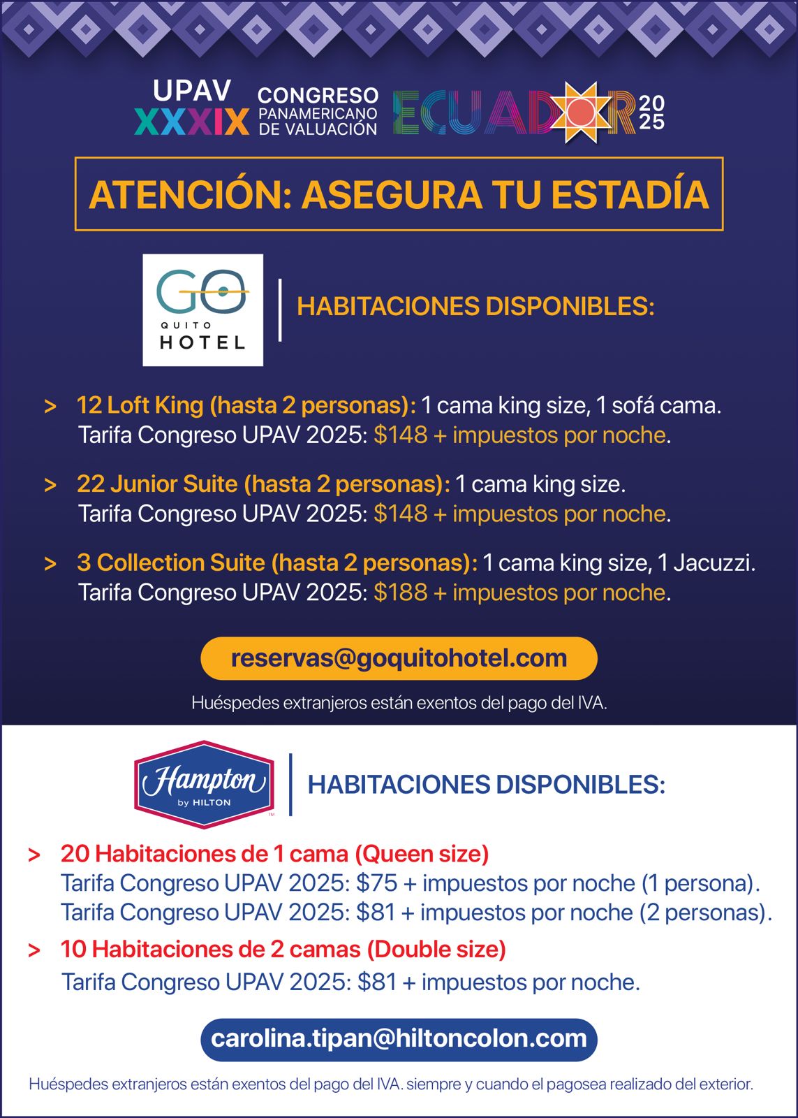 El "Congreso UPAV 2025" se llevará a cabo en el prestigioso GO Quito Hotel, un oasis de lujo y confort en el corazón de la capital ecuatoriana. Este hotel de cinco estrellas ofrece una combinación perfecta de servicios de alta calidad, una ubicación estratégica y un ambiente acogedor, lo que lo convierte en la elección ideal para los asistentes al congreso.